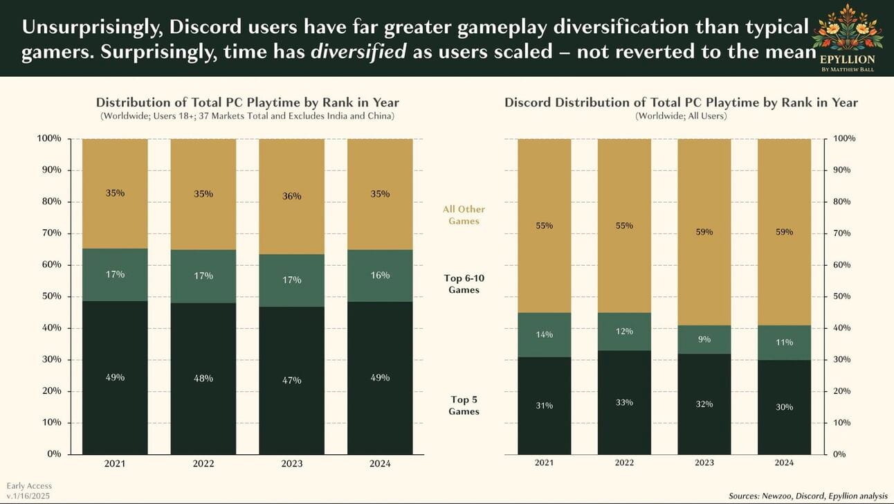 For the sake of brevity, I wanted to pull out just one key highlight from Matthew Ball’s State of Video Gaming in 2025 report, in which Discord features heavily as a focal growth area for the industry.